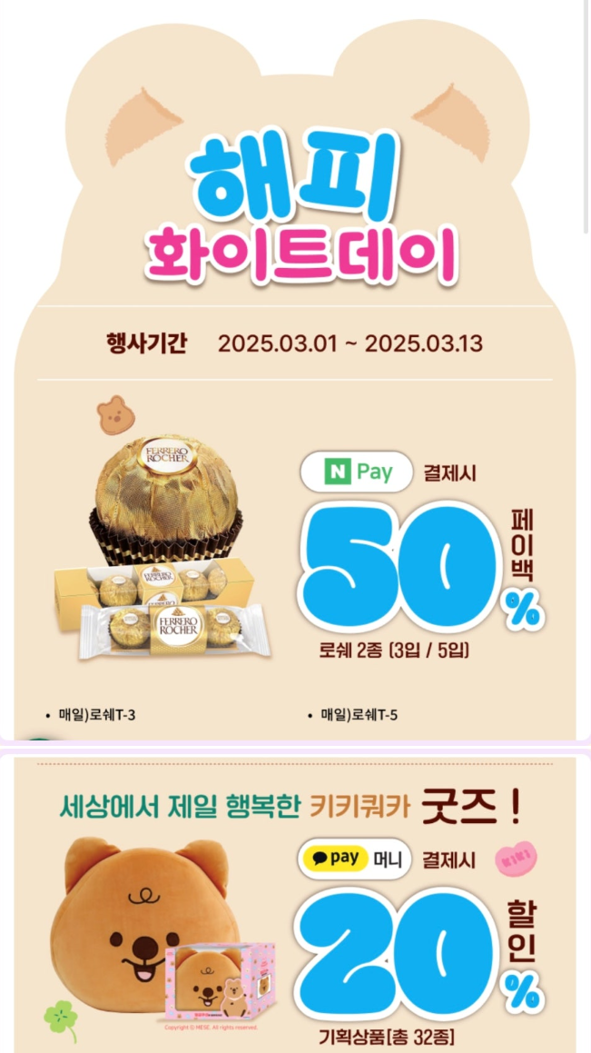2025년도 화이트데이를 앞두고 편의점 3곳에서 행사를 시작했습니다.