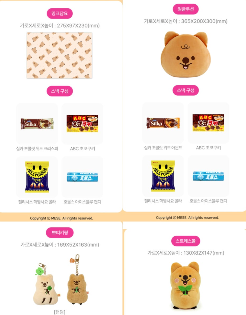 인형과 함께 초콜릿 등 스낵이 같이 구성되어 있습니다.