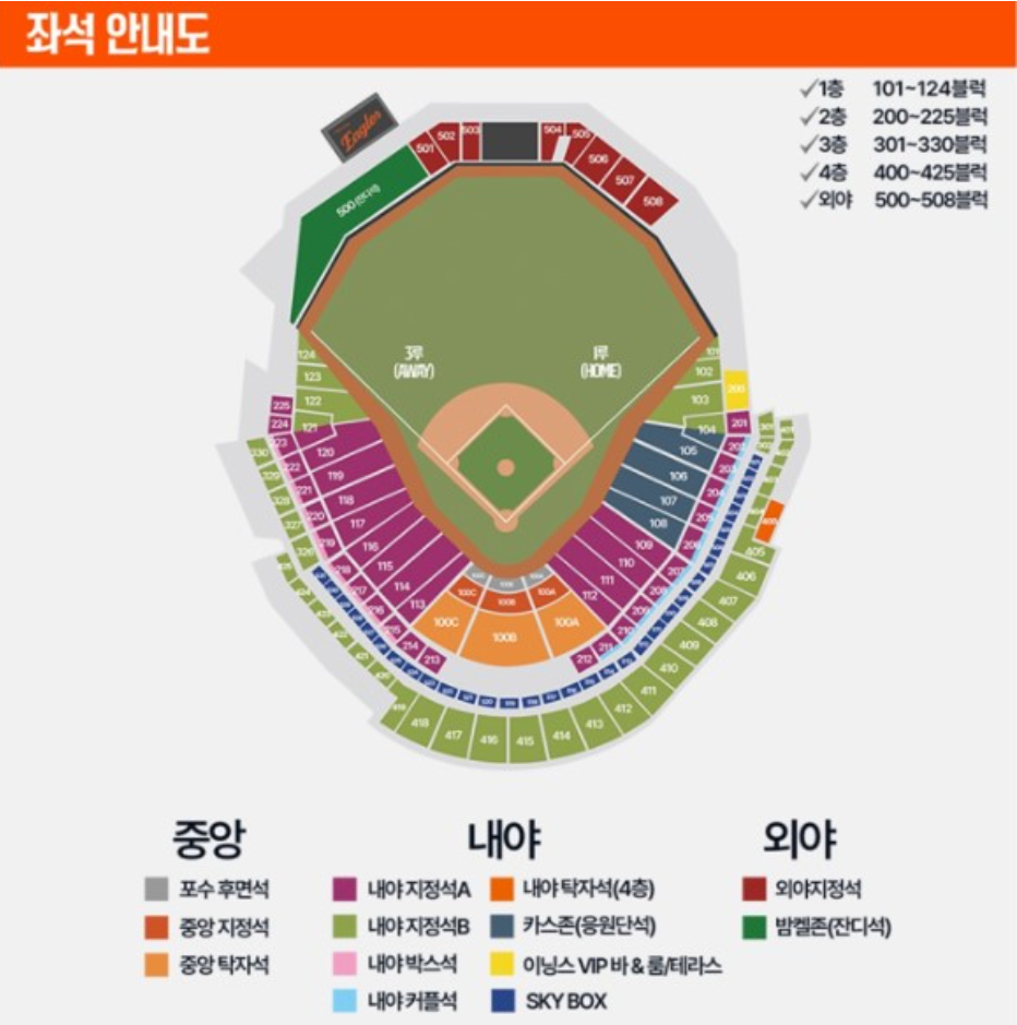 좌석배치도를 확인하고 야구 예매 성공하시길 바랍니다.