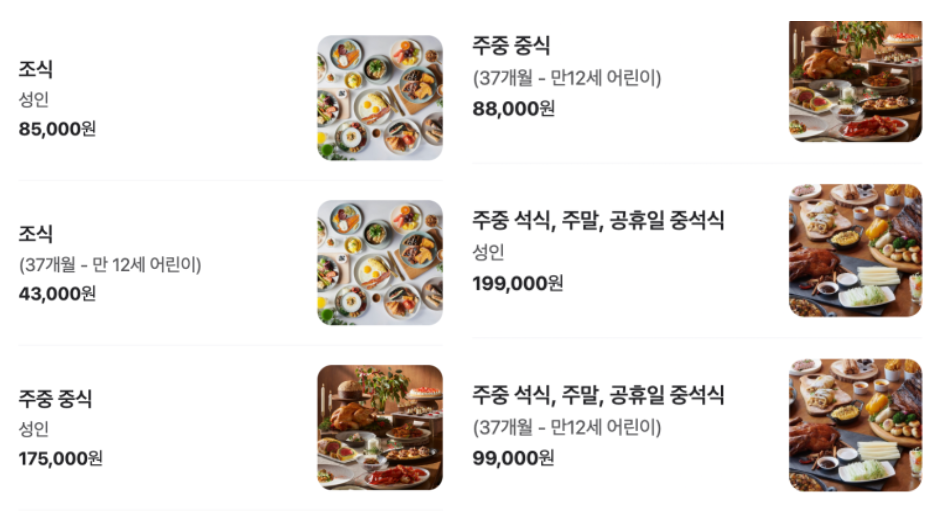 호텔 부페 석식(주말 기준)은 거의 20만원이네요. ㅠㅠ