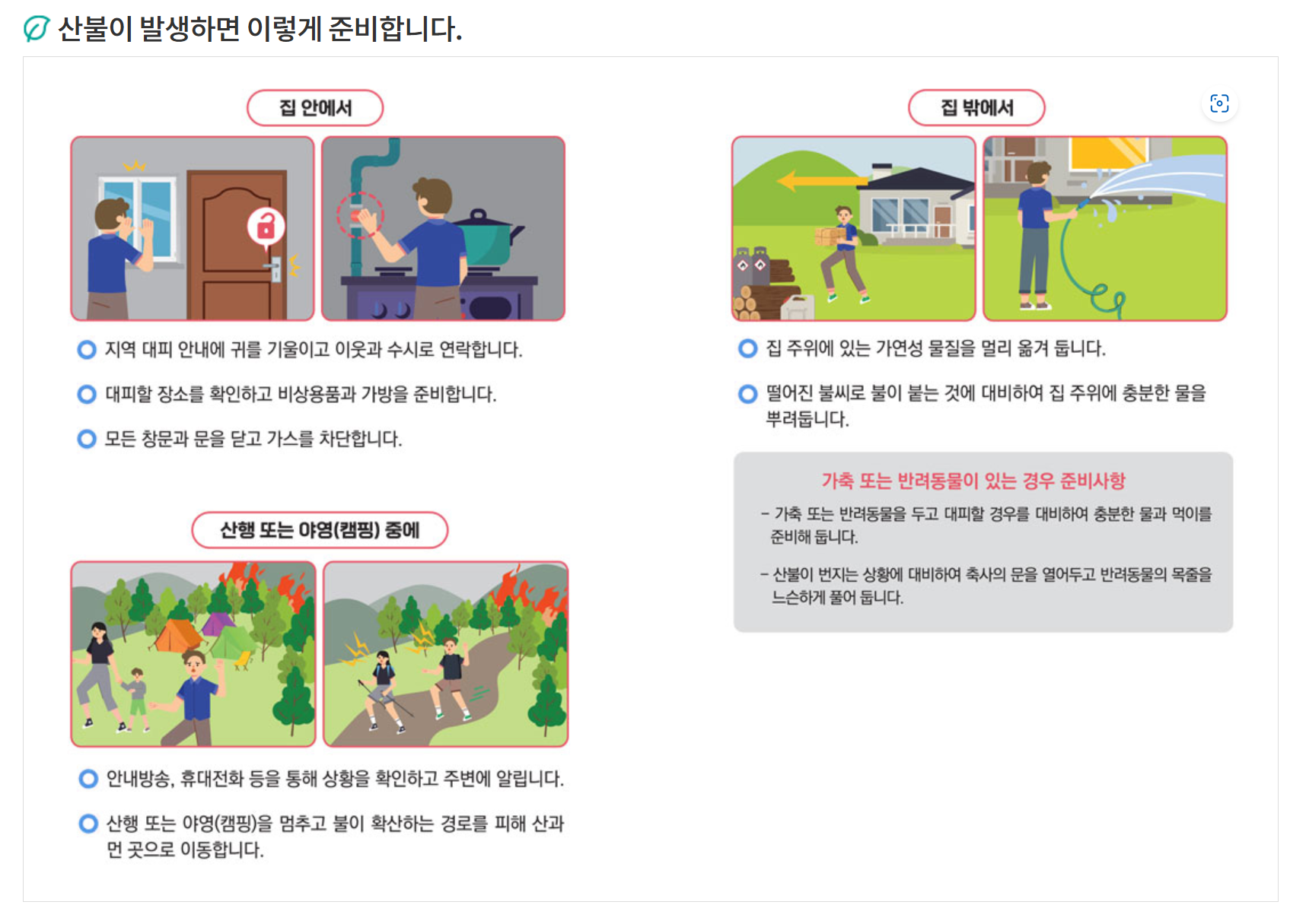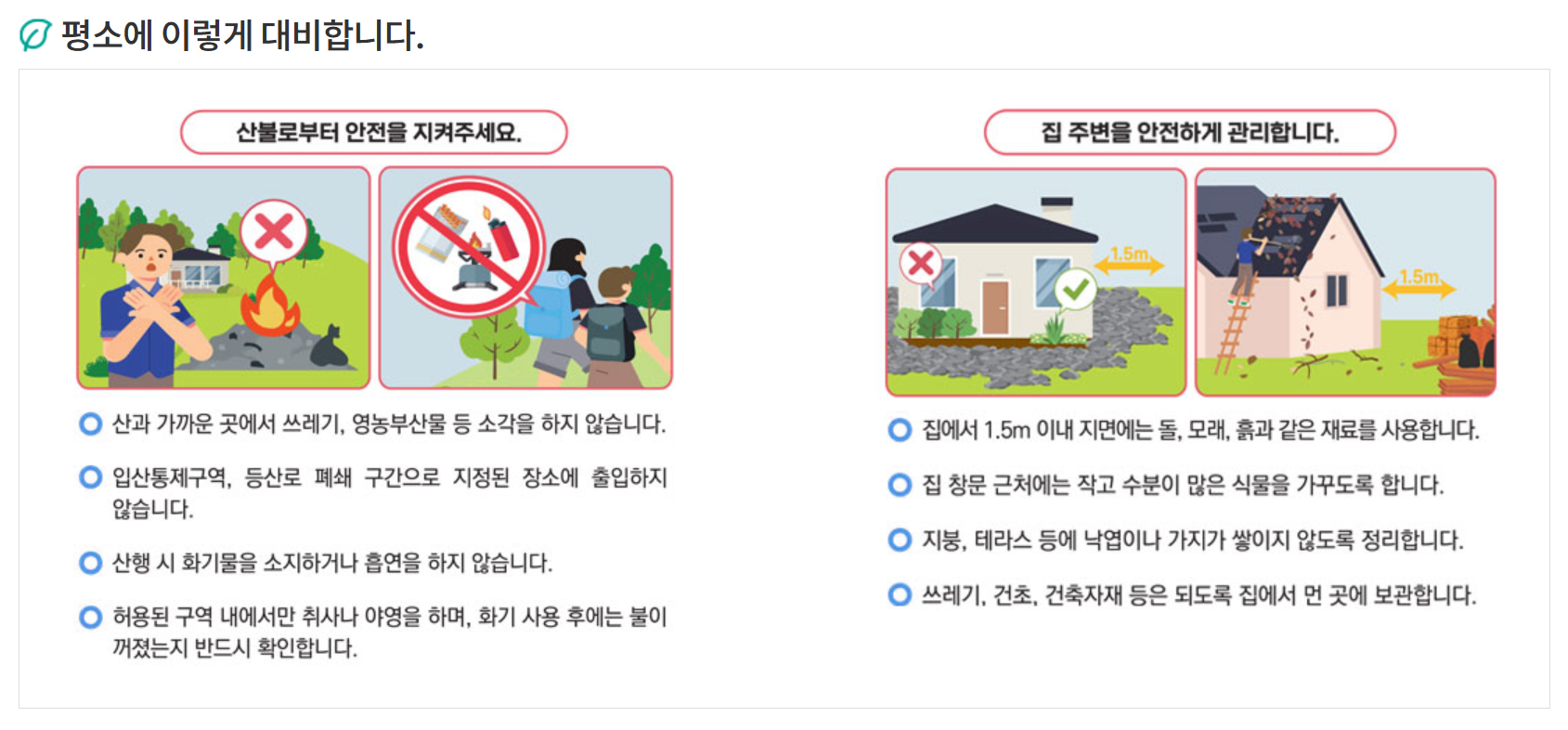산불 방지 국민행동요령이라는 것이 산림청에 잘 나와있으니 참고해시기 바랍니다.
