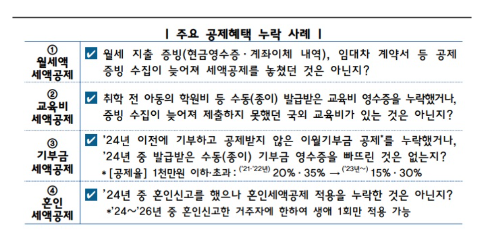 주요 공제혜택 누락 사례에는