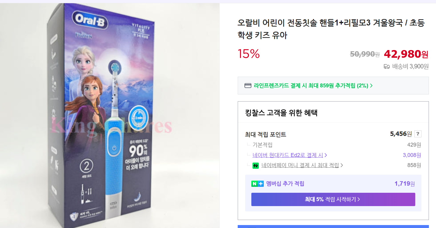 5세 이상 사용 가능한 칫솔로 건전지 충전식 입니다.