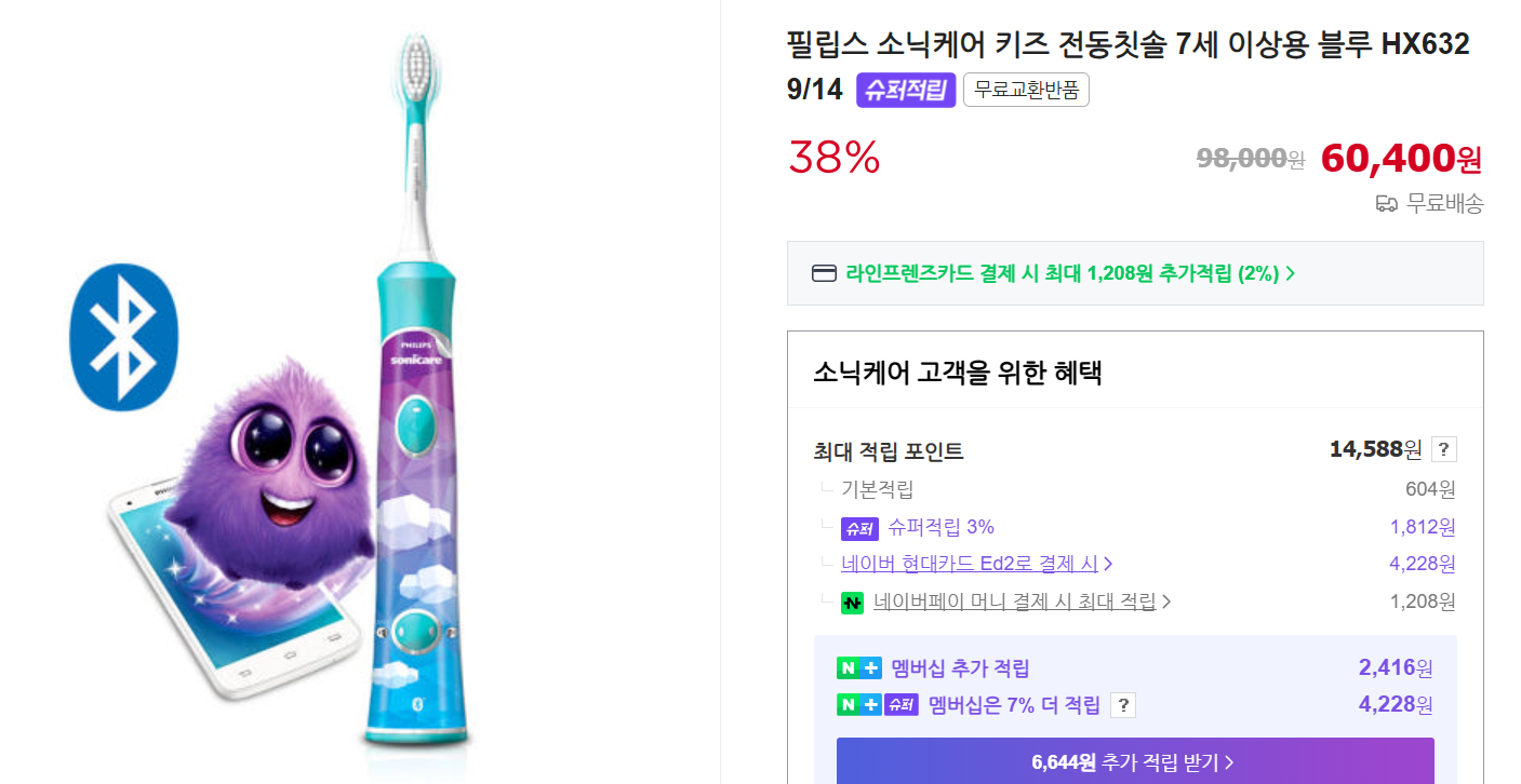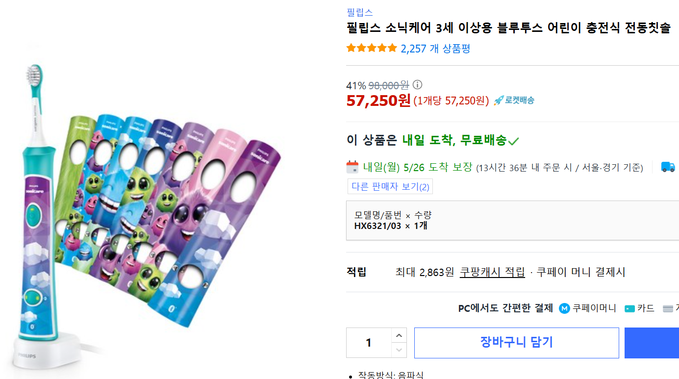 어린이 전동칫솔의 대표적 추천 브랜드는 필립스 입니다.