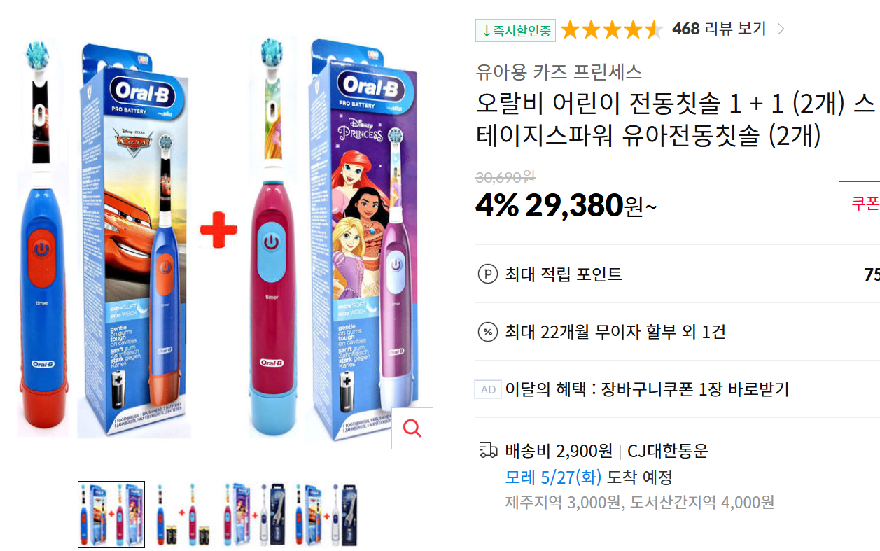 2. 오랄비 어린이 전동칫솔