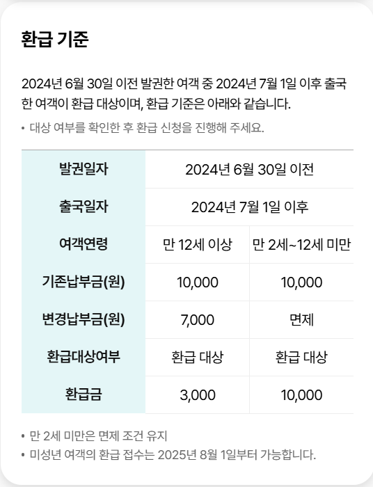 2025년 1월 1일부터 국제질병퇴치기금 폐지로 7,000원 -> 6,000원으로 인하