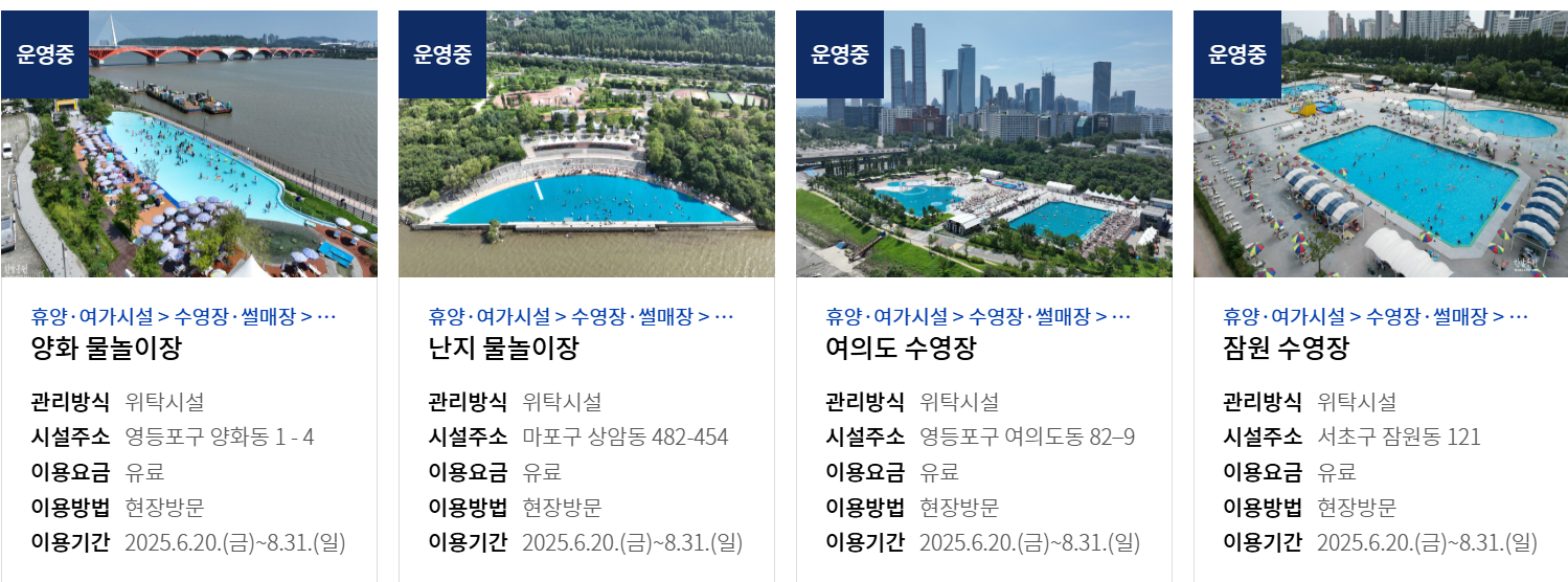 2025년 한강수영장, 물놀이장 6곳 이용 정보